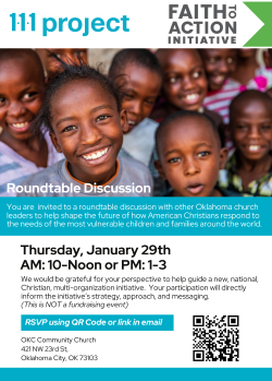 Roundtable discussion with Oklahoma church leaders to help shape the future of how American Christians respond to the needs of the most vulnerable children and families around the world.