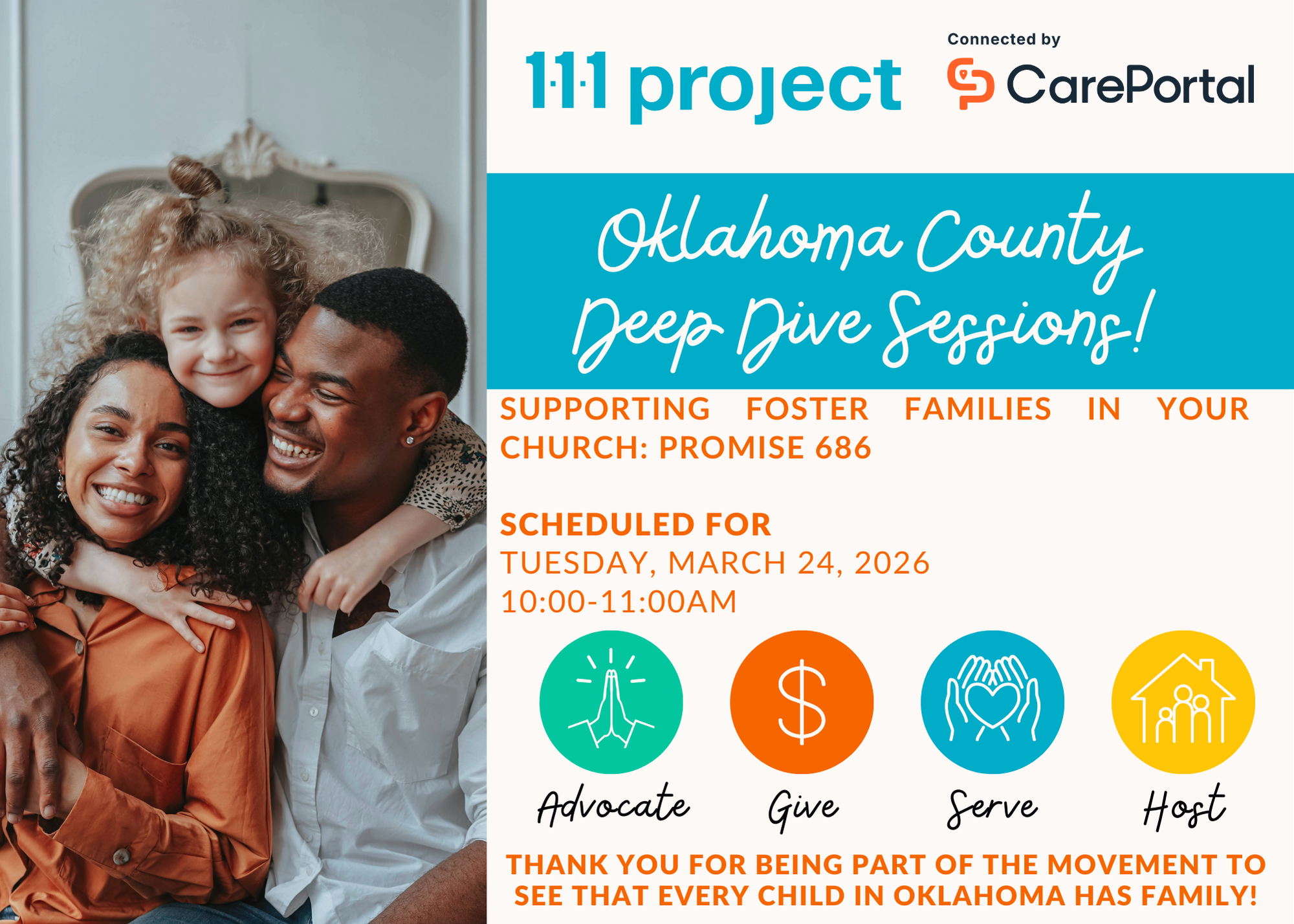Join us for a 1-hour virtual session with more information on the Promise 686 program to support foster families in your church!